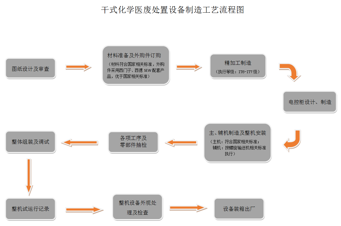 本公司研制的醫(yī)療廢物處理設(shè)備完全達到“中華人民共和國環(huán)境保護行業(yè)標準HJ/T228-2005《醫(yī)療廢物化學消毒集中處理工程技術(shù)規(guī)范》”,具有操作簡單、一次性投資少、運行費用低、占地面積小、減容率高、無廢水廢氣產(chǎn)生的優(yōu)點。